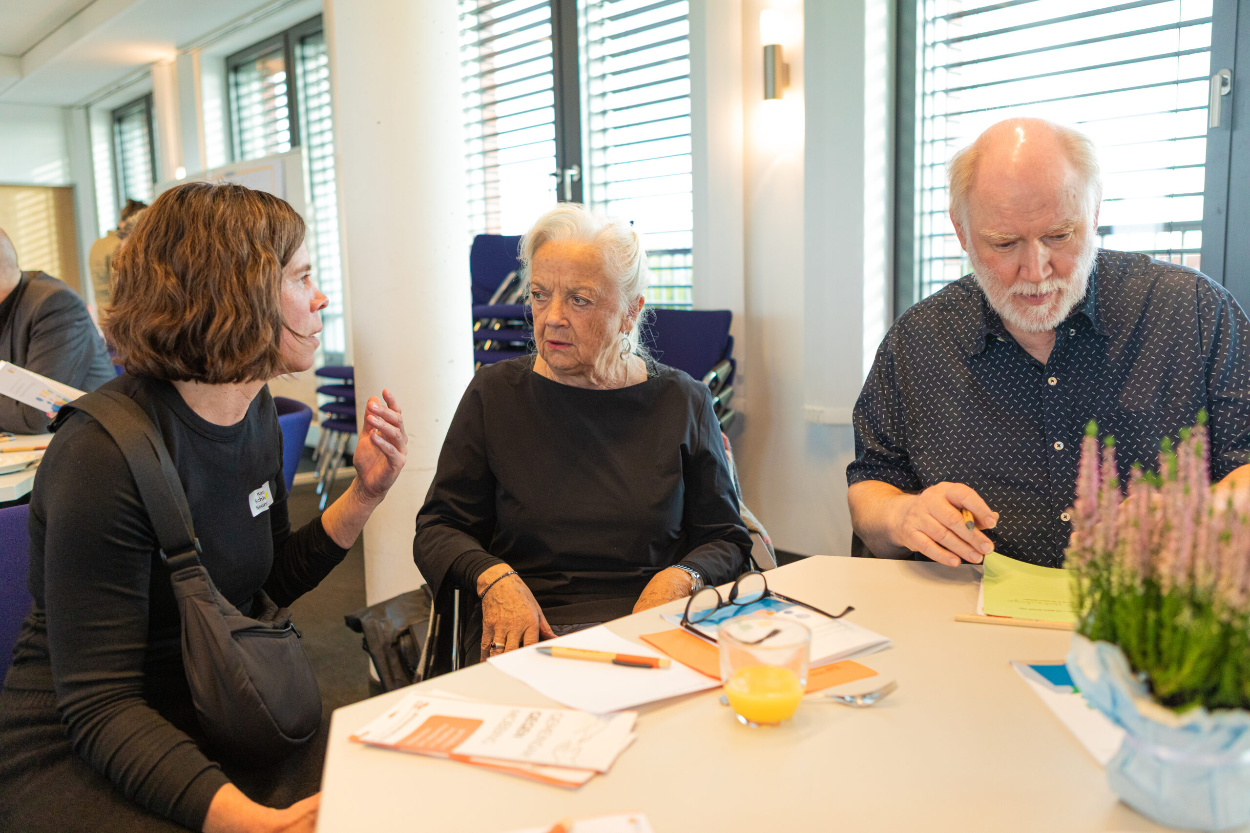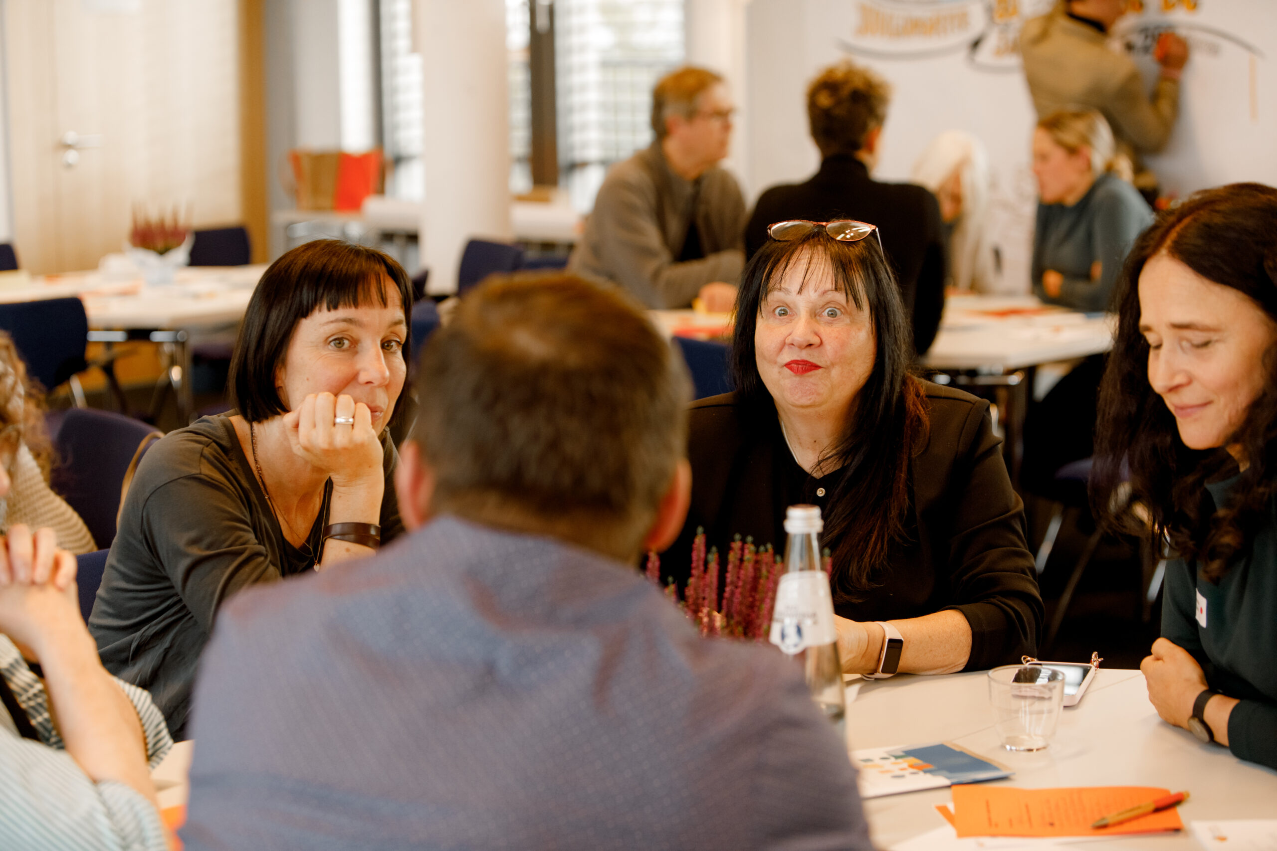 Im Jubiläumsprogramm gab es immer wieder kleine Austauschphasen, in denen sich die Gäst*innen zu verschiedenen Themen ins Gespräch bringen konnten. Diese kurzen Dialoginseln sorgten nicht nur für lebendige Vernetzung, sondern gaben Raum, eigene Perspektiven und Erfahrungen einzubringen.