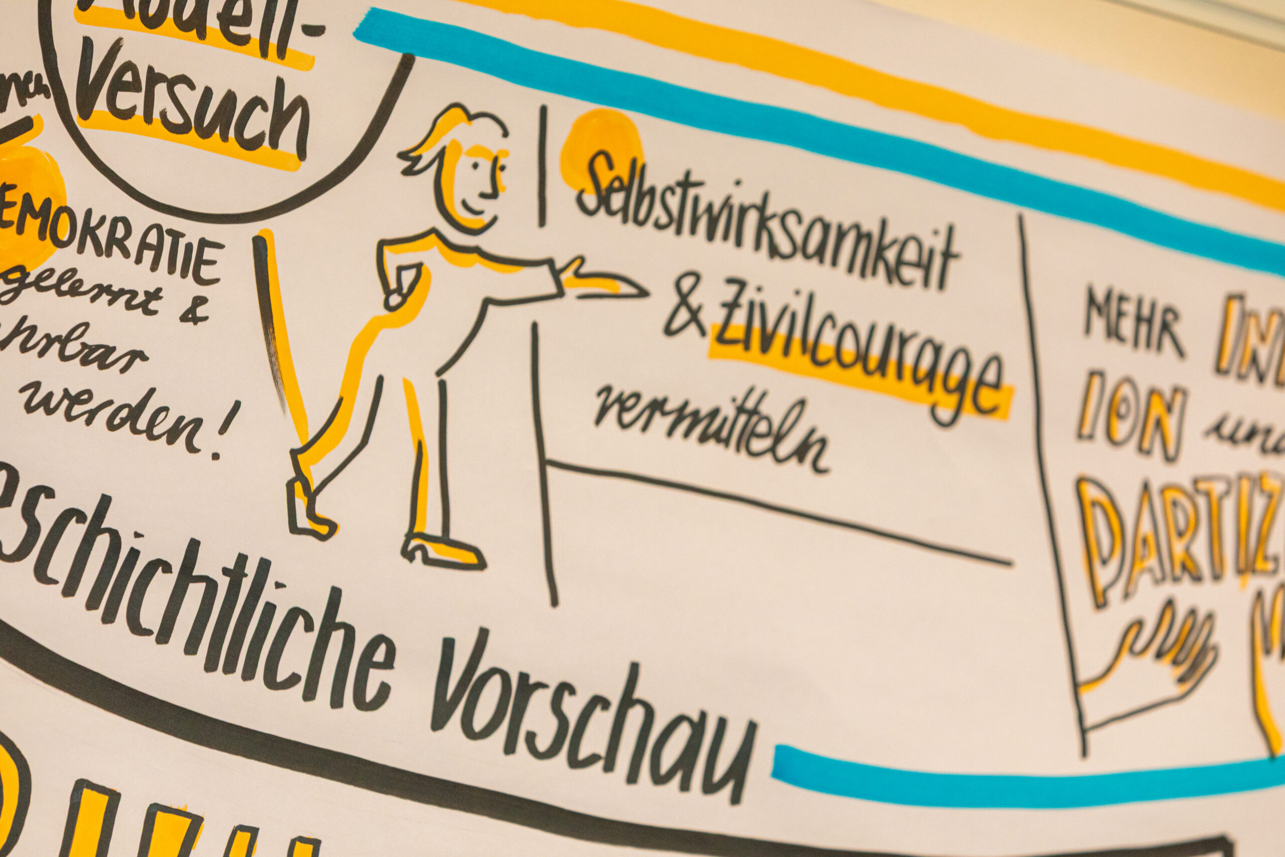 Zentrale Wünsche und Visionen bezogen sich in großer Mehrheit auf die Verankerung und Unterstützung der Demokratiepädagogik. Es besteht die große Hoffnung, dass wir unser zentrales Ziel erreichen und Demokratiepädagogik fest in allen Schulen, aber auch in der Aus- und Weiterbildung von Lehrkräften verankert wird. Parallel dazu besteht Hoffnung auf institutionelle und verlässliche Förderung, die es erlaubt nachhaltige Strukturen zu errichten und es uns ersparen durchgängig kurzfristigen Projektzielen nachzujagen.
